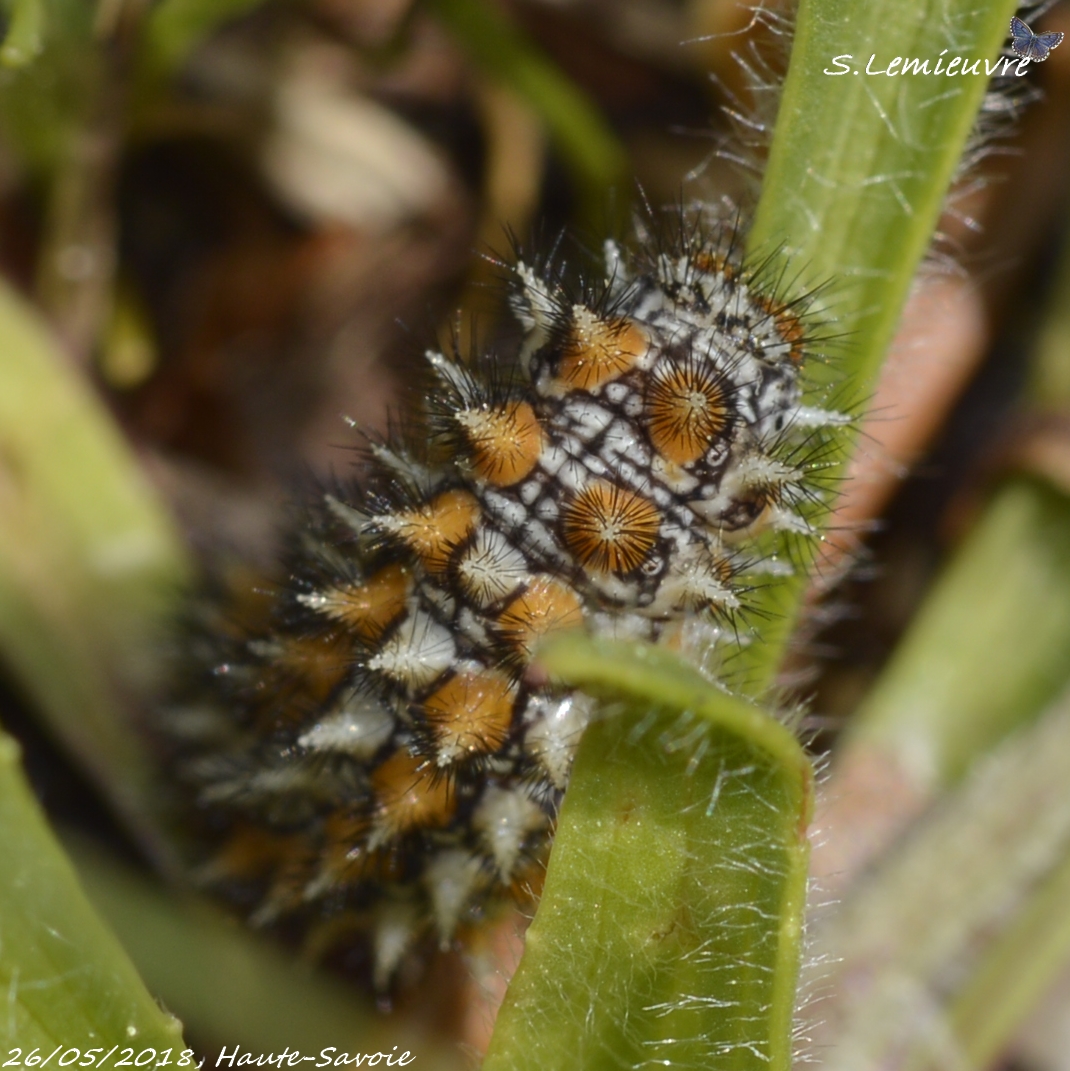 La chenille se nourrit d’une grande diversité d’espèces dont Plantago lenceolata mais aussi de Stachys recta, Odontites luteus, Digitalis, Veronica, Valeriana et Linaria,